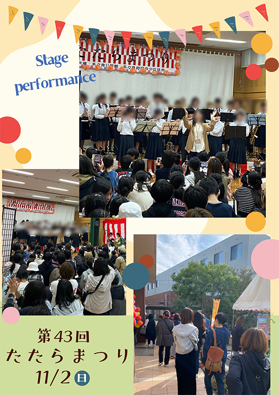 秋の深まりを感じさせる爽やかな日、たたらまつりが開催されました。PTA役員は、芸能発表のステージ裏方のお手伝いをさせて頂きました。